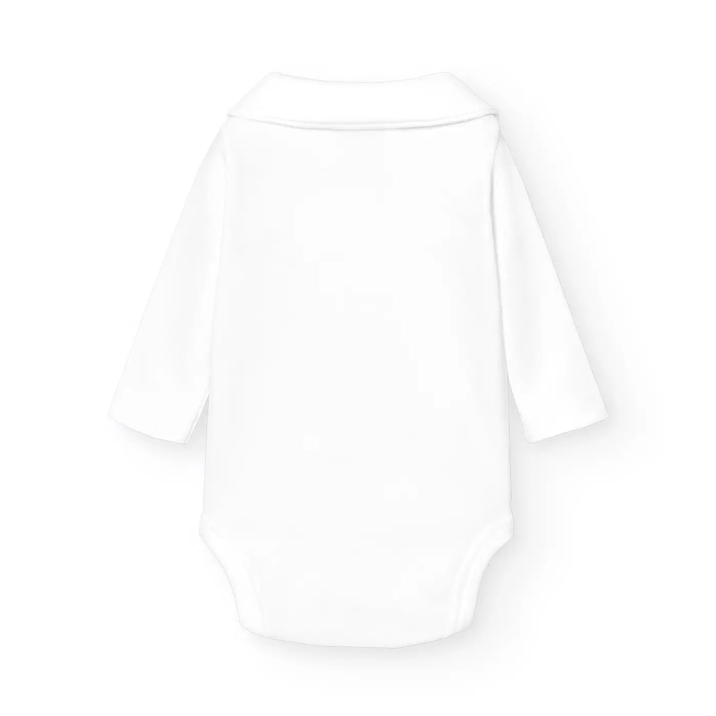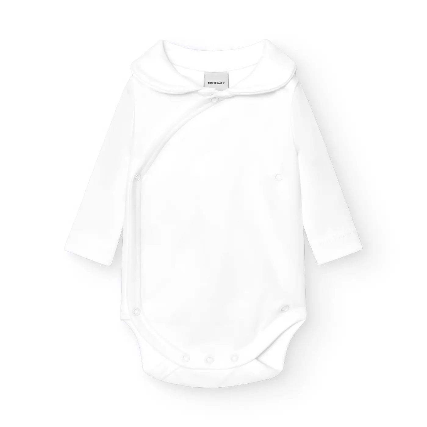 Myk og behagelig body i 100 % hvit bomull, med omslags og fine kragedetaljer som gir et klassisk og stilig uttrykk. Praktisk sideknepping gjør på- og avkledning enkel, samtidig som bodyen er myk og behagelig mot sensitiv babyhud.💙