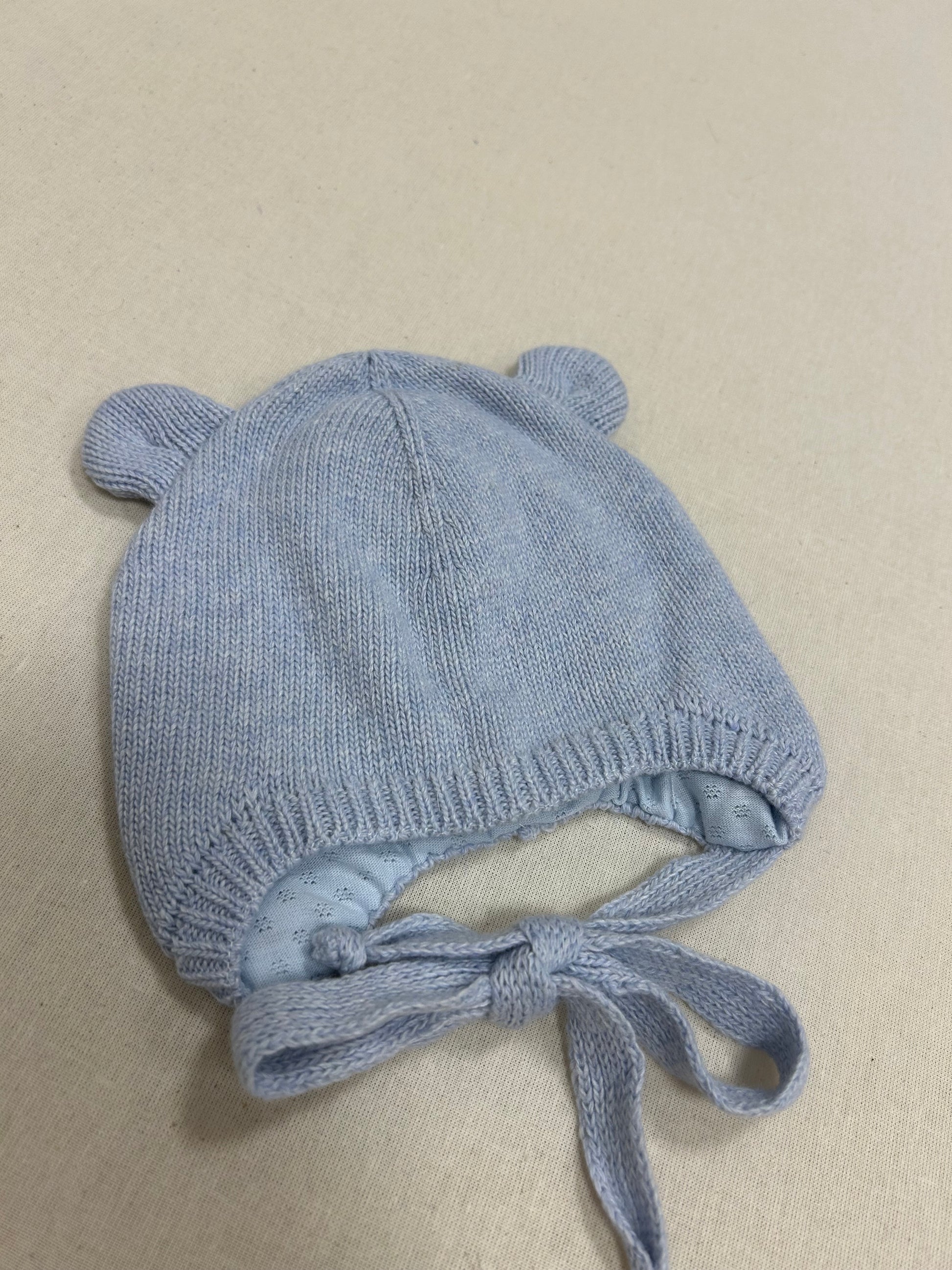 En myk og varm barnelue i moderne design med søte bamseører og praktisk knytelukking.