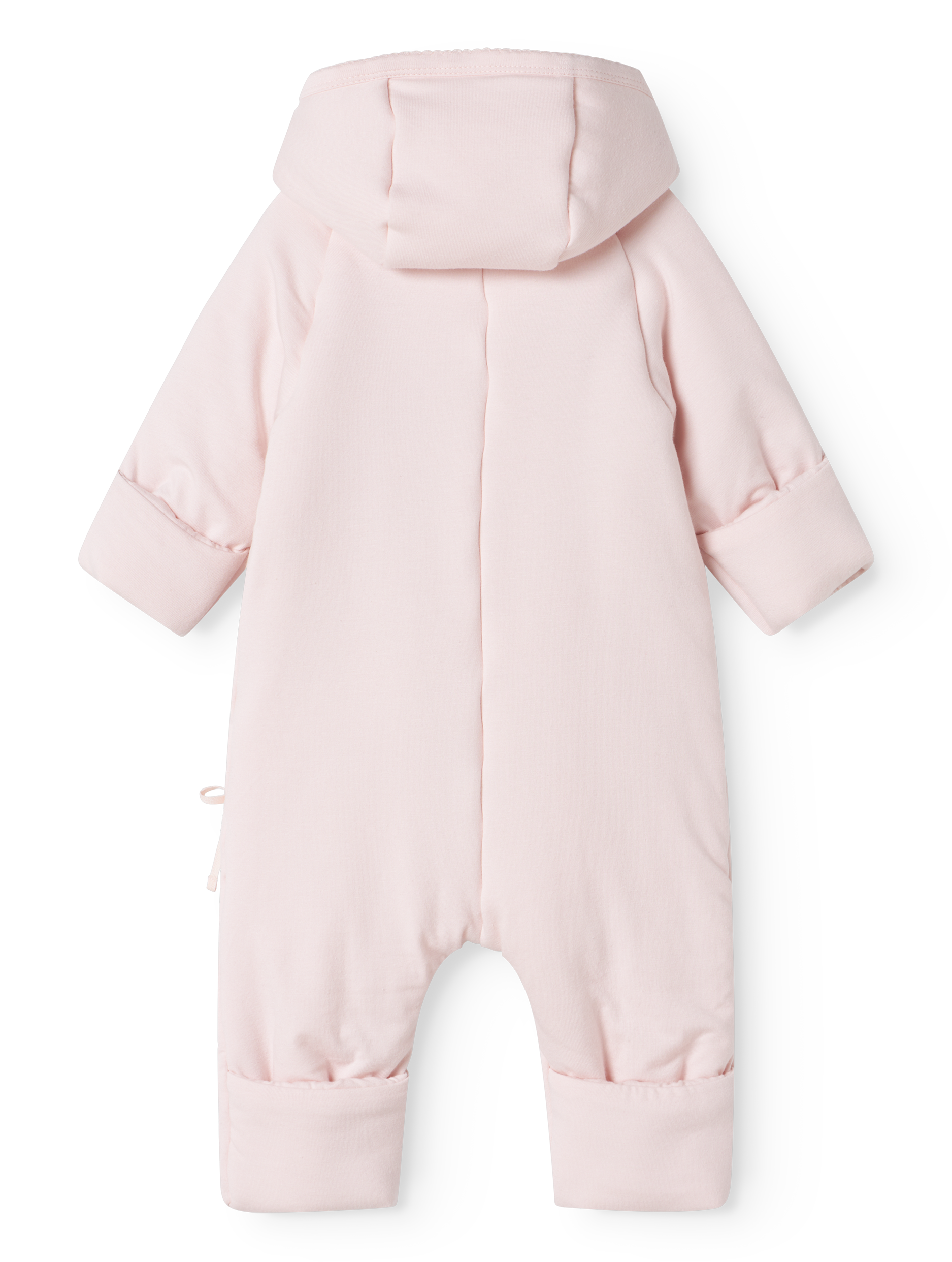 Denne varme, polstrede heldressen er designet for optimal komfort og funksjonalitet med en praktisk hette og kroppsnær lukking. Den lukkes enkelt med trykknapper og sløyfe. Heldressen har innovative sammenleggbare alternativer på hender og føtter som holder babyen varm og godt tilpasset uansett vær. Den søte rosa fargen og det lekne mønsteret gjør denne drakten både stilig og funksjonell, perfekt for daglig bruk. Litt stor i størrelsen.