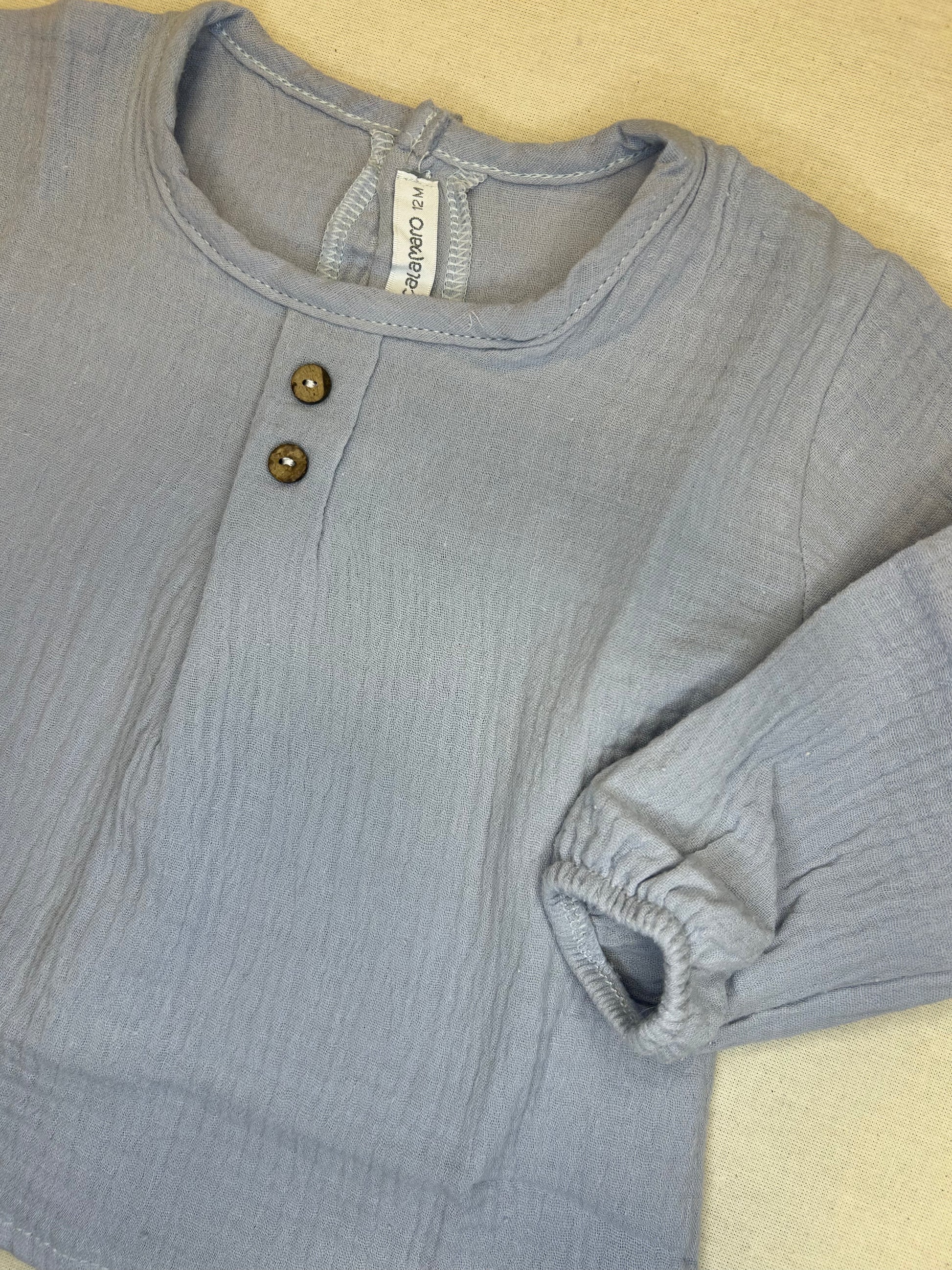 Denne nydelige skjorten i 100 % bomull er håndlaget i Spania med fokus på de små detaljene. Mykt og behagelig stoff i gråblå farge, med tidløst design og perfekte finish - en favoritt i garderoben 💙🧸✨