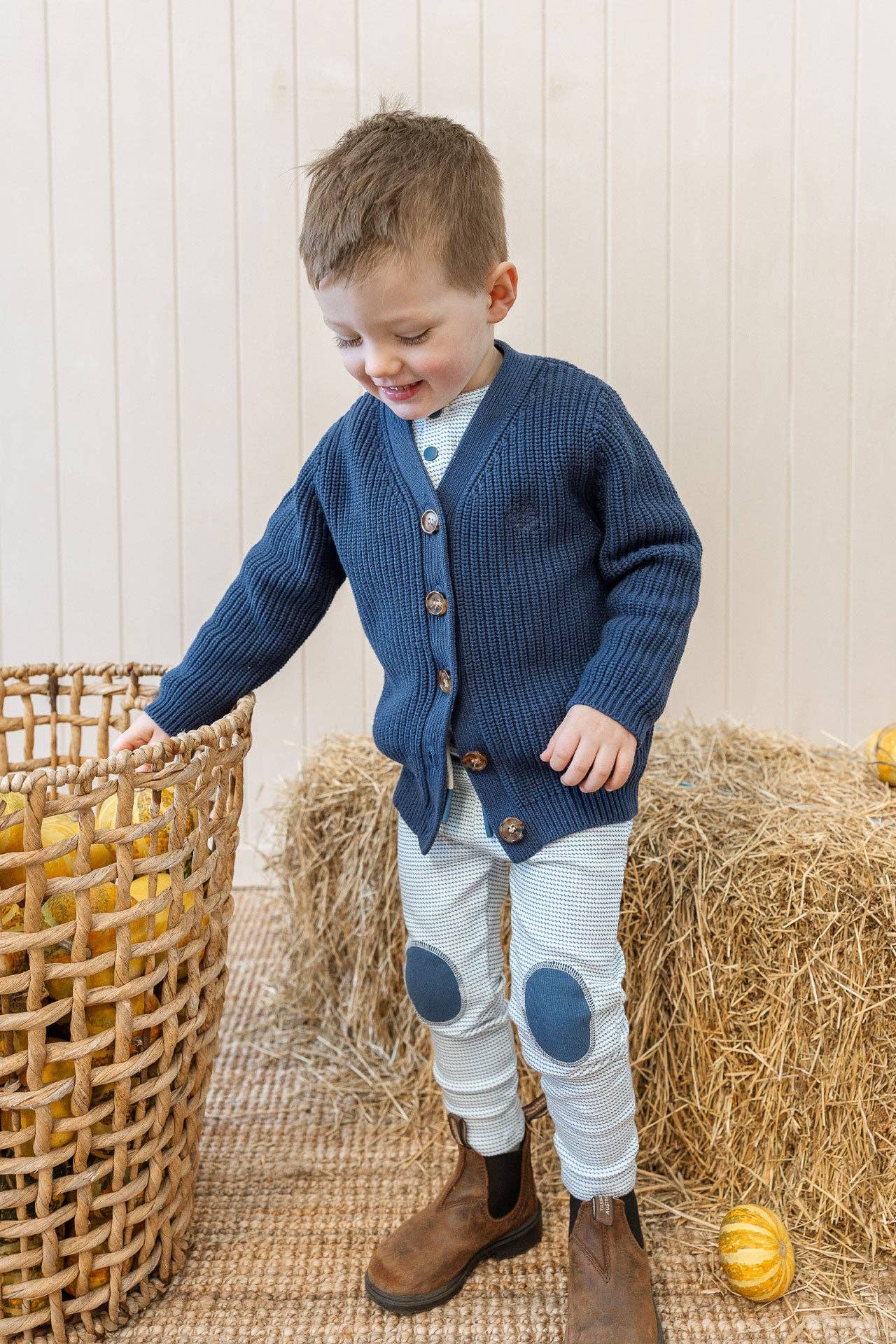 Disse ribbestrikkede leggingsene tåler alt små kropper kan finne på! Myke og stretchy (97 % bomull, 3 % elastan) med slitesterke knelapper for lek, krabbing, dans og utforsking. Elastisk snøring i midjen gjør dem lette å ta på, og de passer perfekt til alle årstider. Klar for action og kos! 🏃🧸